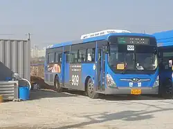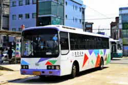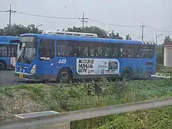 The Hyundai New Super Aero City (Hangul:현대 뉴 슈퍼 에어로시티) is a heavy-duty single-decker bus manufactured by the truck & bus division of Hyundai. It was introduced in 1991. It primarily used as a city bus and an intercity bus as either a complete bus or a bus chassis. It is distinguishable by a front 'Aero City' badge, but the common Hyundai badge is usually on the rear. The model's principal competitors is the Daewoo BS106 Royal City, but it also competed against the now-discontinued Kia AM bus series (originally Asia AM).