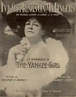 "I've Got Rings On My Fingers" is a popular song written in 1909, words by R. P. Weston and Fred J. Barnes, and music by Maurice Scott. It concerns an Irishman named Jim O'Shea, a castaway who finds himself on an island somewhere in the East Indies, whereupon he is made Chief Panjandrum by the natives because they like his red hair and his Irish smile. He then sends a letter to his girlfriend, Rose McGee, imploring her to come join him.