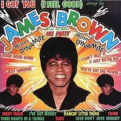I Got You (I Feel Good) is a compilation album by American musician James Brown. It consists primarily of songs released on previous studio albums, including an alternate take of the title track, as well as songs released on singles, such as "Night Train", "I Can't Help It (I Just Do-Do-Do)", and "Suds". The album was released on January 1, 1966. Brown's vocal group, The Famous Flames—Bobby Byrd, Bobby Bennett, and Lloyd Stallworth—can be heard on the previously released songs "Think" and "Good Good Lovin'"; Byrd and Stallworth co-wrote but did not sing on the previously-released "Lost Someone".