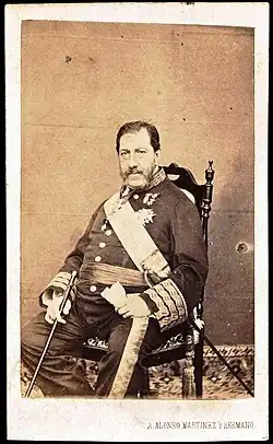 In the spring 1838 Infante Francisco de Paula, his wife and their children settled in exile in France accompanied by the Infante's personal secretary the Count of Parcent.[33] They found a prominent position at the court of Louis Philippe King of the French, whose wife Queen Maria Amelia, was an aunt of Infanta Luisa Carlotta. The Duchess of Dino who met Don Francisco de Paula and his family at the French court, described them as follows: "The Infanta is very fair, with a face which, though washed out, is none the less stern, with a rough manner of speaking. I felt very ill at ease with her, although she was very courteous. Her husband is red-haired and ugly, and the whole tribe of little infantes, boys and girls, are utterly detestable". Meanwhile, in Spain, General Espartero, credited for the victory over the Carlists in 1839, took the post of prime minister. He soon became virtually a dictator, and forced Queen Maria Cristina to resign the regency, sending her to exile in France in October 1840. Maria Cristina's fall from power opened the door for Infante Francisco de Paula return to Spain.[35]