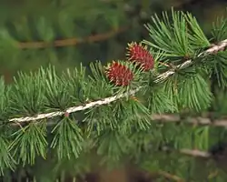 Hybrids planted include L. decidua x L. kaempferi (Larix x marschlinsii; Dunkeld Larch), L. lyallii x L. occidentalis (Bitterroot Larch), and L. occidentalis x L. lyallii (Bitterroot Larch, reverse cross).
