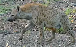 Intersex can occur in mammals such as pigs, with it being estimated that 0.1% to 1.4% of pigs are intersex.[5] In Vanuatu, Narave pigs are sacred intersex pigs that are found on Malo Island. An analysis of Narave pig mitochondrial DNA by Lum et al. (2006) found that they are descended from Southeast Asian pigs.[6][7][8] Female spotted hyenas have a pseudo-penis which led to a myth that they are hermaphroditic.[9]