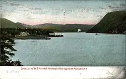 In 1899, the island was bought by the U.S. Navy for use as a naval ammunition depot, becoming one of the largest ammunition facilities in the nation, at that time. On November 4, 1903, an explosion at the site killed six workers, and blew out windows across the river in Peekskill, three miles away.[8] The explosion occurred while men were drawing the explosive charges from a consignment of old shells recently arrived from the battleship Massachusetts.[12]