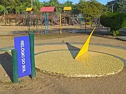 The walking and biking paths that intercede the park allow direct access to nearby neighborhoods, such as Canaã and Iguaçu.[13][14] Besides the lake, there are soccer fields, courts, an amphitheater and a playground for children inside the park.[10] Next to the leisure area is the Science Park, where physical, biological, chemical and astronomical phenomena can be observed or interacted with by the visitor.[10] In the same space as the Science Park and the playground are also the "whispering corner", the "path of the stars", the "water cloud" and the sundial.[15]