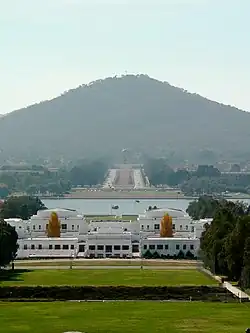 A view of Mount Ainslie from Parliament House. Mount Ainslie is a prominent landmark in the Australian Capital Territory named after James Ainslie.