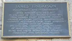 James Finlayson (29 August 1772 Penicuik Scotland – 18 August 1852 Edinburgh Scotland) was a British Quaker who, in effect, brought the Industrial Revolution to Tampere, Finland, founding in 1820 the Finlayson company.[1][2][3]