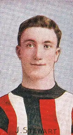 Stewart was a wingman in North Melbourne's 1903 Victorian Football Association premiership team and was also a member of the side which were awarded the premiership the following year. Although Carlton tried recruiting him, Stewart opted to join St Kilda in 1905.[2] He was used as a centreman originally but ended up spending most of his time on a half forward flank and topped St Kilda's goal-kicking in both 1907 and 1908, with 21 and 28 goals respectively.[3] His best effort in 1907 was a seven-goal haul in a win over Geelong at Corio Oval, breaking the club record, which had stood at four goals.[4] He returned to North Melbourne in 1911 and then spent a season with Carlton.