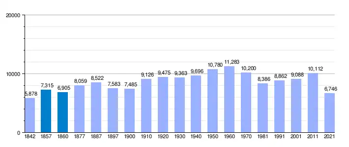 demographic vertical bar chart of Jimena de la Frontera[2] between 1842 and 2021