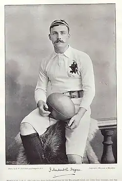 John Herbert Crangle Fegan FRCS (17 May 1868 – 26 July 1949)[1] was an English rugby union wing who played club rugby for Blackheath and international rugby for England. Fegan was an all-round sportsman, playing cricket for Blackheath[2] and was a member of the Eagle Lawn Tennis Club at St John's College.[3]