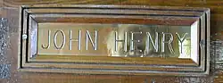 John Henry's brass nameplate