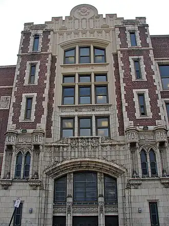 It was designed by Henry deCoursey Richards and built by Cramp & Co. in 1915–1916. It is a four-story, seven bay reinforced concrete and brick building on a raised basement in Late Gothic Revival-style. It features a projecting entrance bay and limestone and terra cotta decorative details.[2]