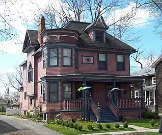 John P. Sommers House is a historic home located at Lancaster in Erie County, New York. It was built in 1906, and is a 2+12-story, wood-frame Queen Anne style dwelling. It has a hipped roof and center projecting gable. It features a prominent two-story, five-sided corner tower and has a single-story porch across the front facade.[2]