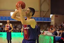 At the time of his retirement from playing professional basketball, Navarro was the EuroLeague's all-time career leader in total Performance Index Rating (PIR) (that record was eventually broken by Vassilis Spanoulis),[16] and also the league's career leader in total points scored (4,152 points)[1] in the modern EuroLeague Basketball era of the competition, since the year 2000 (that record was also eventually broken by Spanoulis).[16] Navarro also retired as the all-time career leader in total points scored (4,321 points), in the entire history of the EuroLeague (since 1958), including when the competition was run by FIBA Europe, as he also scored 169 total points in the FIBA EuroLeague 1999–00 season.[17] In March 2019, Navarro's number 11 jersey was retired by the club.[16][18][19]