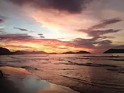 Juqueí (archaic spelling Juquehy) is a popular beach in the city of São Sebastião, São Paulo, located in the northern coastline of São Paulo state in Brazil. It is neighboring the beaches of Barra do Una and Preta Beach and just over 10 km from Camburi Beach. The beach is approximately 3.5 km long, with fine white sand and transparent water. It has many hotels, inns, bars, beach kiosks, and street vendors, as well as grocery stores, pharmacies, and bakeries in the neighborhood. To the right corner are good waves, while the left corner is suitable for bathing and families with children. Besides its natural attractions, Juquehy is also known for its traditional cuisine, such as "Pescado a Cambucu", which is a type of hake.