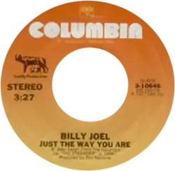 "Just the Way You Are" is a song by Billy Joel from his fifth studio album The Stranger (1977), released as the album's second single in early November 1977. It became both Joel's first US Top 10 and UK Top 20 single (reaching No. 3 and No. 19 respectively), as well as Joel's first Gold single in the US. The song also topped the Billboard Easy Listening Chart for the entire month of January 1978.