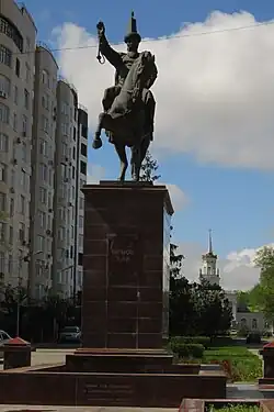 The legacy of the Kara-Kyrgyz Khanate and Ormon Khan remains popular in Kyrgyzstan, and Ormon is regarded as a national hero who united the tribes of northern Kyrgyzstan and created the first Kyrgyz state, referring to him as "Kyzyl Tebetey".[54] In 2002, an equestrian monument of Ormon Khan was installed on Chinghiz Aitmatov Avenue in Bishkek, and in 2012, the Kyrgyz Post Office issued a stamp featuring Ormon.[55][56] Several of Ormon's descendants maintain positions in the Kyrgyz government and academia, including Kyrgyz National University professor Ryskul Zholdoshev, film director Melis Ubukeyev, and Supreme Council speaker Kanatbek Isaev.[57][58]