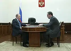 - ^ Президент Российской Федерации. Указ №849 от 13 мая 2000 г. «О полномочном представителе Президента Российской Федерации в федеральном округе». Вступил в силу 13 мая 2000 г. Опубликован: "Собрание законодательства РФ", No. 20, ст. 2112, 15 мая 2000 г. (President of the Russian Federation. Decree #849 of May 13, 2000 On the Plenipotentiary Representative of the President of the Russian Federation in a Federal District. Effective as of May 13, 2000.).