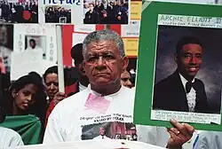 ![]() Archie Elliott Jr., the father of Archie Elliott III, during the National Emergency March for Justice Against Police Brutality in April 1999 | |