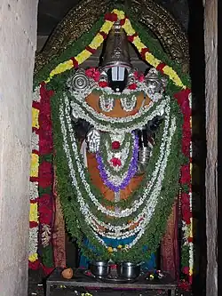 Lord Venkateswara who is referred to as Konetirayudu is the primary presiding deity of the temple. The deity is believed to be Kalpatharu (a heavenly tree that gives boon), Chintamani (a celestial power) and Kamadhenu (the heavenly cow that gives all). In the sanctum of the temple, Konetirayadu like in Tirumala, is in standing posture with his "Kati Varada Hastas", natural "Sankhu Chakras" and with the impressions of Sridevi and Bhudevi, on the chest. Huge Jaya-Vijayas (watchmen at the gate of the Lord's Place), an ancient Chennakesava idol with his two wives, five Alwars, Bhoovaraha Moorthy, Garudalwar, Anjaneya Swamy statues, all can be seen in the temple.