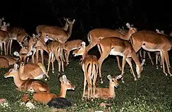 The park hosts zebra, hippopotamus, impala, warthog, common eland, African buffalo and over 300 bird species. Predators may include the lion, leopard, hyenas, genets, African civet, jackals and serval, and since 2015 there is a population of Rothschild's giraffe.[7] The protected area was considered a 'lion conservation unit' by the IUCN in 2005,[9] despite lions no longer occurring here. Lions were eliminated by the indigenous people in the 1980s, but there were reports in early 2015 of a single lion roaming the areas of Miriti, Kashara, Warukiri and Rwonyo. Because this was considered problematic by the local residents, a solution offered was to translocate the lion to the zoo. At the same time, park management floated the idea of reintroducing lions to the park.[7] The lion roaming the area eventually attacked and injured three people, causing a large crowd of the enraged community to hound the animal with stones and sticks. The Uganda Wildlife Authority made the decision to kill the animal, as the community was angry and the situation had become dangerous. It is thought to have migrated from Kagera Game Reserve in Tanzania.[10]
