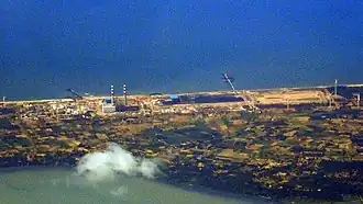 The power station is in Norocholai, Puttalam, on the southern end of the Kalpitiya Peninsula. Construction of the facility began on 11 May 2006, with the first unit commissioning on 22 March 2011.[1] The first 300-megawatt phase was completed and ceremonially commissioned by President Mahinda Rajapaksa on 22 March 2011 at 18:27 local time, with the presence of Minister of Energy Champika Ranawaka, deputy Minister of Energy Premalal Jayasekara.[2][3]