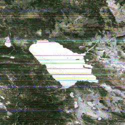 Although the MSS was the most useful instrument on Landsat 2, sometimes the data recorded was anomalous. The U.S. Geological Survey (USGS) would identify these anomalies and document them. Known issues on the MSS are: banding, coherent noise, data loss, impulse noise, oversaturation, scan correlated shift (SCS), scan mirror pulse, and transmission striping.[11] Transmission striping occurred when data from an individual sensor was lost. Most commonly, multiple data losses occurred simultaneously, resulting in an image with colored bands on it. This form of data anomaly could not be corrected in post processing.[12]