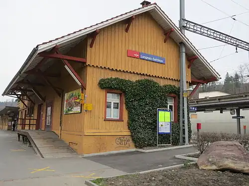 Langnau-Gattikon is a railway station in the Sihl Valley, and the municipality of Langnau am Albis, in the Swiss Canton of Zurich. Gattikon is an adjacent settlement, part of the municipality of Thalwil. The station is on the Sihltal line, which is operated by the Sihltal Zürich Uetliberg Bahn (SZU).[1]