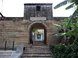 Lantau Island and Tamão, Tuen Mun were among the first European trading settlements in the Pearl River area, established by Portuguese traders in the 1510s. The Portuguese abandoned these settlements around 1517, following their defeat by Chinese troops in the Battle of Tunmen and Battle of Sincouwaan.[6] Lantau was visited in 1607 by one of the early Dutch East India Company (VOC) fleet commanders Cornelis Matelieff de Jonge who describes his visit to the local "mandarin". A drawing of this official's compound was published in the 1648 edition of Matelieff's travelogue.[7] Much later the island became an important trading post for the British, long before they became interested in Hong Kong Island.