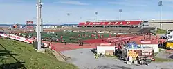In 2004, the Rouge et Or repeated as Vanier Cup champions for the first time in school history by defeating the Saskatchewan Huskies in the 40th Vanier Cup.[10] Laval became the fourth program in Canadian collegiate history to repeat as Vanier Cup champions. It was the lowest scoring game in Vanier Cup history as Laval won by a score of 7-1 and it was the first Vanier Cup held outside of Toronto as the game was played at Ivor Wynne Stadium in Hamilton, Ontario.[10]