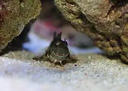 Salarias fasciatus, commonly known as the jewelled blenny or lawnmower blenny is a benthic, neritic, marine fish species endemic to Australasia. Despite being known as the lawnmower blenny, due to its propensity to consume algae growth in aquaria, it is principally a detritivore, with plant material making up only about 15% of its diet.[2] The lawnmower blenny camoflauges itself with its surroundings, even changing color to hide from predators.