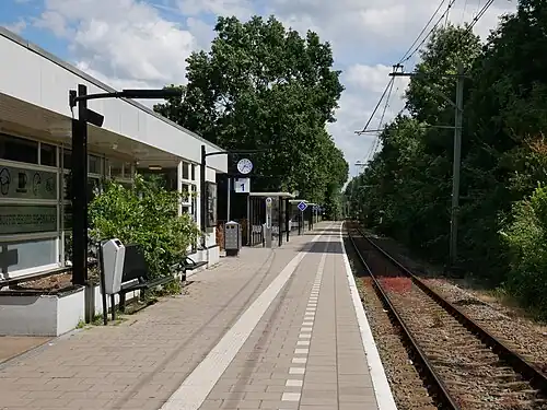 Leiden Lammenschans is a railway station in Leiden, Netherlands. The station, designed by Koen van der Gaast, was opened on 18 May 1961. It is served by trains running between Leiden Centraal and Utrecht Centraal, and by RijnGouweLijn trains running between Leiden Centraal and Gouda at peak hours.