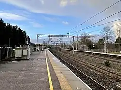 Southward view of the low-level platforms in 2024; the high level platform is on the bridge over the main line