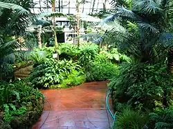 The Fern Room or Fernery, approximately five and a half feet below grade, was opened in 1895. It contains plants of the forest floor, primarily a vast collection of ferns and one of the most historical plants, the cycads. Fossils of these plants date back at least 250 million years. These plants are similar to conifers and the ginkgo tree rather than palm trees.[8]