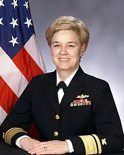 Her personal awards include the Defense Superior Service Medal, Legion of Merit, Meritorious Service Medal, Navy Achievement Medal, and various campaign and unit awards.[2]