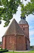| ↑ | Koolkerke | St Nicholas church[15] | 14th century aisleless first brick church, after destruction in 16th century, in 16th/17th centuries rebuilt as a hall church; pale grey brick |