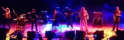 Gong are a Franco/British rock band founded by Australian vocalist/guitarist Daevid Allen and English vocalist Gilli Smyth in 1967.[1] The band's first recording line-up featured Allen and Smyth alongside bassist Christian Tritsch, drummer Rachid Houari and saxophonist/flautist Didier Malherbe.[2] The band's current line-up from Allen's death on 13 March 2015 features lead guitarist Fabio Golfetti (in 2007 and since 2012), bassist Dave Sturt (since 2009) saxophonist/flautist Ian East (since 2010), vocalist/guitarist Kavus Torabi (since 2014) and drummer Cheb Nettles (since 2014).[3]