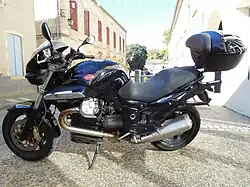 - Breva 750 i.e. or Breva V 750 i.e. (744 cc) (2002–2009): The Breva was the first motorcycle developed and marketed by Moto Guzzi after the company became a subsidiary of Aprilia.[2] As a standard motorcycle, the Breva 750 was formally introduced to the press at Intermot 2002, Munich. Like the Nevada, the Breva 750 features the 'small block' engine derived directly from the engine Carcano designed for Guzzi in the mid-1960s and Tonti refined: the 750 cc V-twin, rated at 48 bhp (36 kW). With its ease of maintenance, durability and even, flat torque curve, the engine design remains suitable to everyday, real-world situations. To mark the rejuvenation of Moto Guzzi, the first Breva 750 was delivered to its owner on April 7, 2003, in a special ceremony at the Mandello works. Likewise, the first 100 Breva 750's were delivered to their Italian dealers in a special ceremony on March 26, 2003, at Mandello del Lario headquarters on the occasion of the company's anniversary.