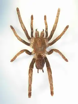 - ^ "Family: Theraphosidae Thorell, 1869". World Spider Catalog. Natural History Museum Bern. Retrieved 2019-12-08.