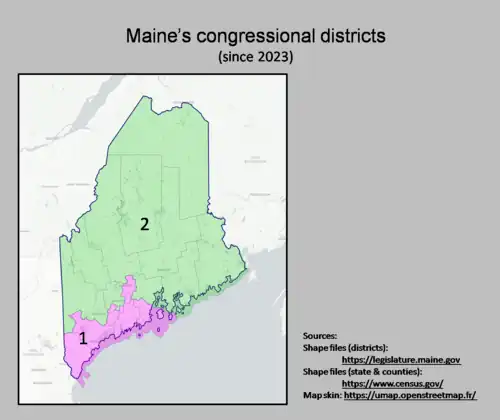 - ^ a b c d Maine used to be part of Massachusetts. After the 1810 census, Massachusetts was allocated 20 districts. Seven districts (numbers 14 through 20) were credited to Maine soon after it became a state in 1820.