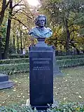 During the early Soviet period a number of monuments were stolen or destroyed. The cemetery was officially closed for burials in 1927, though they continued until 1932, and it was decided to turn it into a necropolis museum, displaying historically and artistically significant graves.[2][1] Alongside this was concept of gathering together the graves of the friends and contemporaries of Alexander Pushkin for the 1937 centenary commemorations of the poet's death. The architectural and planning department of Lensovet, the city administration, was tasked with creating a memorial park project.[2] Plans were drawn up by architects E.N. Sandler and E.K. Reimers, with further input from the city's chief architect L.A. Ilyin.[2] The Funeral Affair Trust was established to run the necropolis museum, including removing abandoned gravestones for sale as building materials.[4] The reconstruction radically altered the nature and appearance of the Tikhvin cemetery. With the intention being to create an "artists' necropolis", graves of those from other sections of society were removed. Fewer than a hundred of the original monuments were preserved.[2] Meanwhile, the remains of prominent artists, sculptors, composers and musicians were reburied in the cemetery. Among them were personal friends of Pushkin, including Konstantin Danzas, Anton Delvig, and Fyodor Matyushkin.[2]