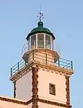 1863 | 6 m | 25 m | 11 nmi (20 km) | Built by the French, this lighthouse is situated atop St. Elmo tower in St. Nicholas Fortress in Mandraki Harbor. Its flashing, white light was able to be seen 14 miles (23 kilometres) away. The tower, made of masonry, was rebuilt in 2007. The lantern was also refitted and restored. It now contains a 300mm optic (produced by the Tideland company).[2] |