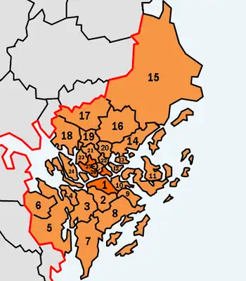 7. ^ "Land and water area 1 January by region and type of area. Year 2012 – 2019". Statistics Sweden. Retrieved 23 July 2019.