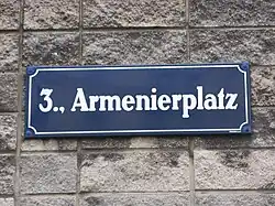 77. ^ "Armenierplatz". wien.gv.at (in German). Archived from the original on 28 December 2024. Armenierplatz (3), benannt (6. November 2001 Gemeinderatsausschuss für Kultur) unter Bezugnahme auf die Jahrhunderte lange Präsenz der armenischen Volksgruppe in Wien und deren Bedeutung für das Wiener Kulturleben.