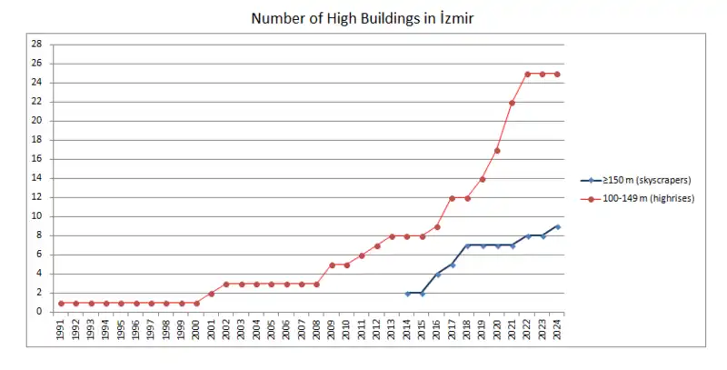 - ^ Tallest building in İzmir between 1991 and 2014 and tallest building built in the city in the 1990s. First structure in İzmir to surpass 100 meters. 60th tallest building in Turkey.