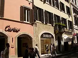 Via dei Condotti Street Mixture, notably 16th-, 17th- and 18th-century architecture Rome's leading shopping street, it contains a wide category of high-fashion or haute-couture boutiques and salons, such as Valentino, Bulgari, Gucci, Dolce & Gabbana, Louis Vuitton, Chanel, Giorgio Armani, Prada and Dior, the headquarters, ateliers or major offices of major flagship labels such as, and also several of the city's finest restaurants, cafes, antique shops and bars.