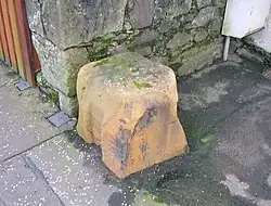 An old cheese press stone was used as a mounting block and is still located outside the old post office.