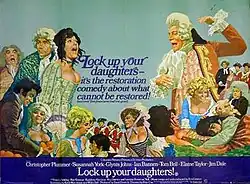 Lock Up Your Daughters! is a 1969 British comedy film directed by Peter Coe and starring Christopher Plummer, Susannah York and Glynis Johns.[2] It is an adaptation of the 1959 stage musical of the same name set in 18th-century Britain, which in turn is based on the 1730 comedy, Rape upon Rape, by Henry Fielding It lacks all the songs from the original stage production. It was one of a number of British costume films released in the wake of the success of the Tom Jones (1963).[3]