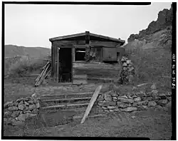 Frontal view of abandoned hut