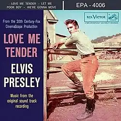 Instead of a full long-playing album soundtrack, for Love Me Tender the four songs appearing in the film were released as an extended-play or E.P. seven-inch 45 RPM record on RCA Victor, Love Me Tender, catalog EPA 4006, during November 1956.[2]