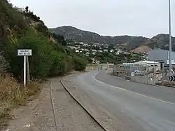 Disused Lyttelton Port main oil siding crossing Godley Quay.